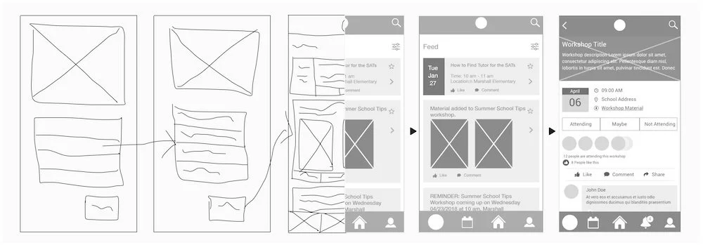We used card sorting to prioritize features and define our MVPs, then translated those into an information architecture that mapped out the structure of the app. We moved to sketches and wireframes, gradually refining our ideas until they evolved into high-fidelity mockups, ready for testing and development.